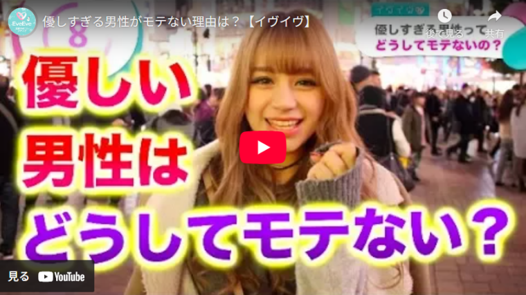 インタビュー動画ということもあり、女性がどのようなことを思っているのか把握できるため、「イヴイヴ」を始める上での参考となります。また、別のチャンネルでは男性に対するインタビューを行っており、そちらでは女性をターゲットとしています。