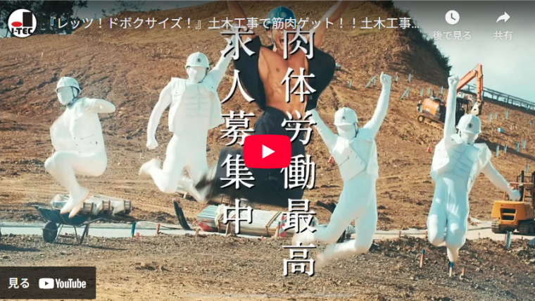 動画は、新卒採用向けに制作されており、「土木工事で一緒に筋肉ゲットしよう」というメッセージを伝えています。ユニークな会社の印象が伝わってくる動画です。企業紹介を目的とした動画であるにもかかわらず、20万回以上の再生数を達成。多くの視聴者の心を掴んでいる動画と言えるでしょう。