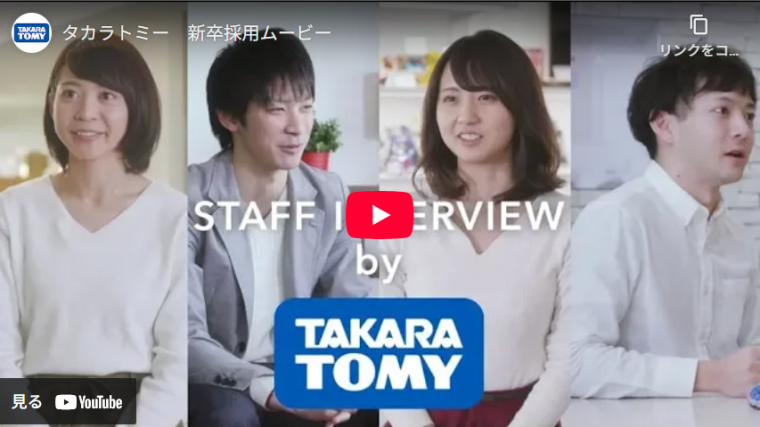 タカラトミーでは、様々な部署に所属する複数の社員に動画内でインタビューをおこなっています。