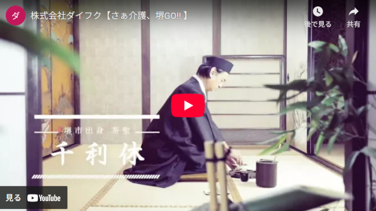 介護を扱う会社が千利休を現代に呼び起こし、企業を紹介する動画です。会社に入社すると遭遇するイベントをコミカルに紹介しています。