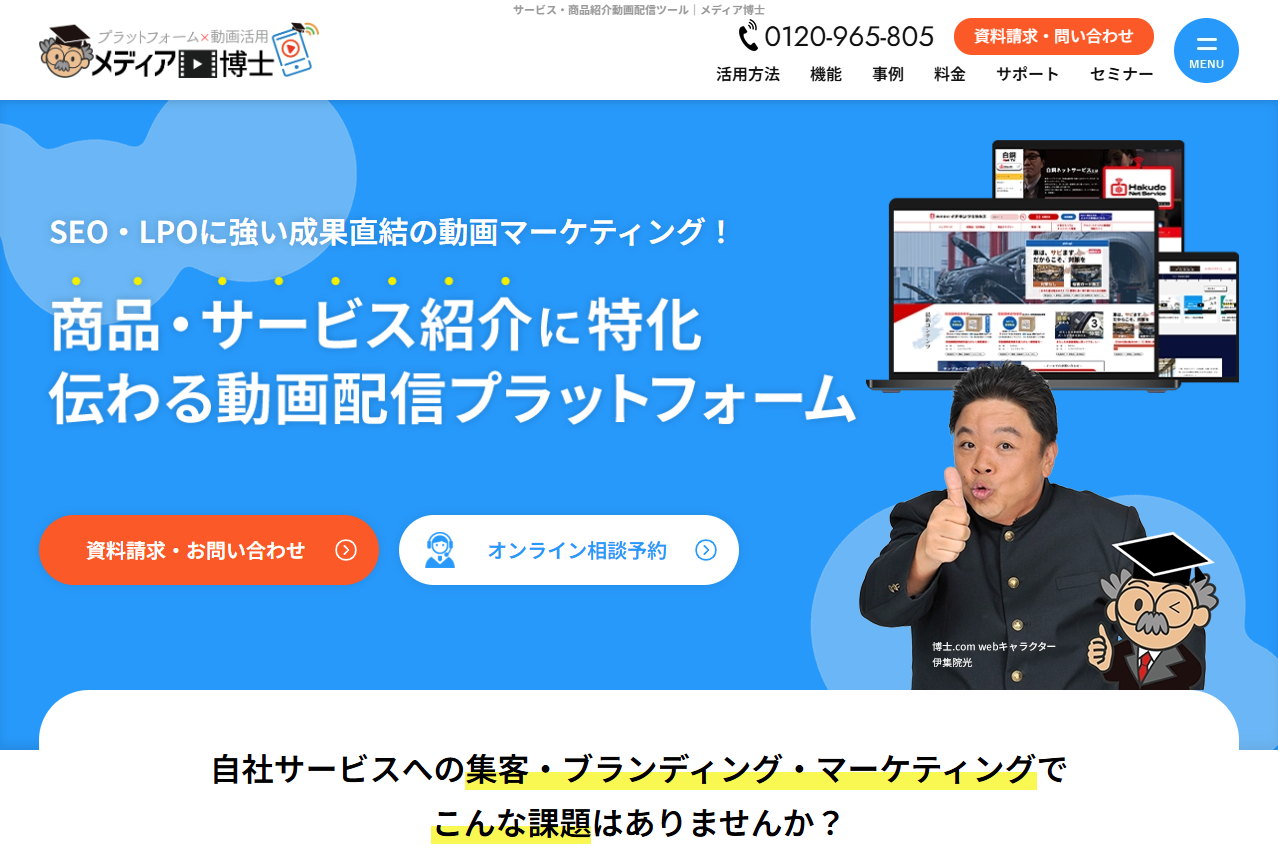 メディア博士は、動画を社内で作り、複数部署で活用し、必要に応じて更新していく運用を想定したクラウド動画制作ツールとして、商品紹介動画の内製化を進めたい企業にも活用されています。