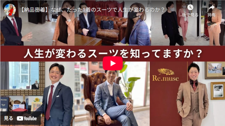 今YouTubeで人気を博しているオーダースーツブランドの「Re.muse」がオーダースーツ納品までを追った動画になります。