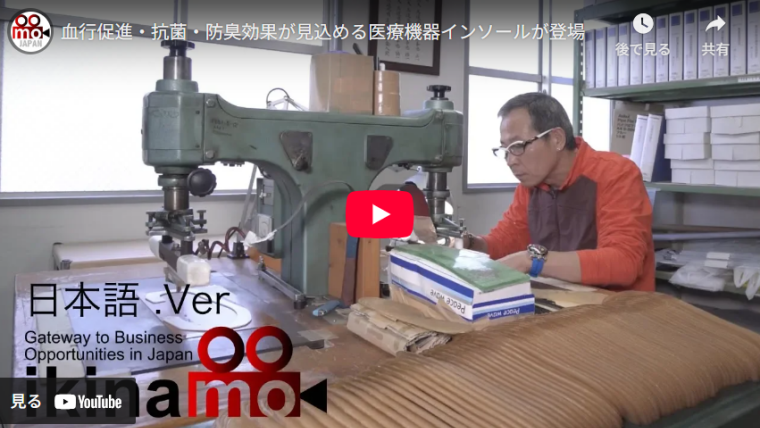 こちらの動画では日本の最新技術を情報発信するサイトにて医療機器インソールを紹介しています。磁石による血行促進、銅板による抗菌・防臭効果の製品特徴を紹介しながら管理医療機器の技術力を発信しています。