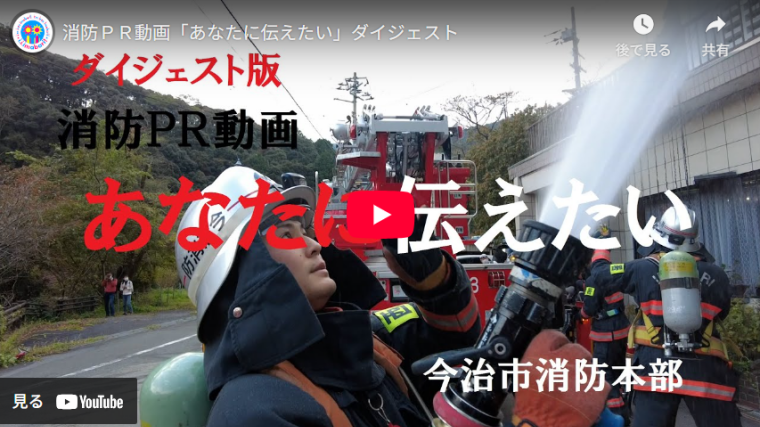 地元住民へ動画を制作することで、街の魅力を再発見してもらうことが可能です。今治市消防署が制作した動画では、今治消防署の役割が伝わるよう仕事内容をテンポよく紹介しています。