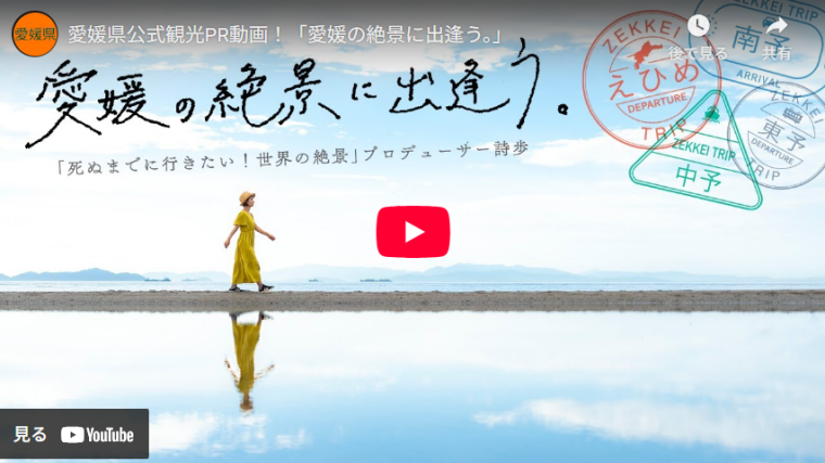 PR動画としてよく制作される観光紹介動画。愛媛県内にある「絶景スポット」を1つずつ紹介。動画の中では、絶景スポットを淡々と紹介するのではなく、どのような角度から写真を撮影すると良いのかも提案しています。