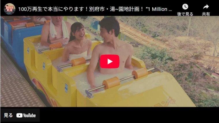遊園地のジェットコースターの席を温泉化するなど、有名温泉地である別府市ならでの嘘みたいな企画が100万再生で本当に実行されるとあって、「おもしろい!」「本当に実現してほしい!」というユーザーの共感を呼び、SNSなどで大々的に拡散されたことでバズ動画となり、プロモーション動画として大きな成果をあげたと推測されます。