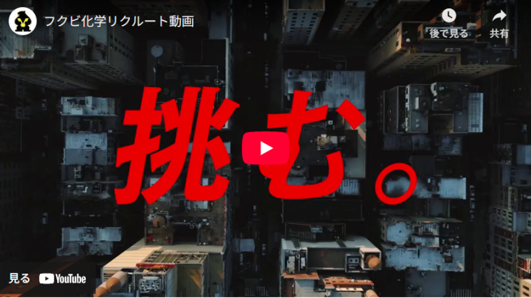 2分半の動画ですが、その短い時間の中でフクビ化学工業株式会社が100年以上続く歴史ある会社だということがわかりますし、どういった事業をおこなっていて、どういった職種の募集をおこなっているのかまでしっかりと伝わる構成になっています。