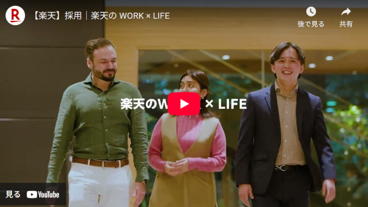 実際にその会社で働いている自分を想像させることで、「この会社に入社したい」「この会社で働きたい」など、ワクワクするような未来を見せてくれるのが、楽天の新卒採用動画です。