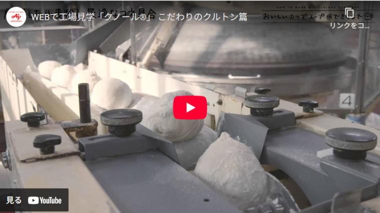 例えば、「味の素KK公式チャンネル(AJINOMOTO OFFICIAL)」では、カップスープ「クノール®」に入っているクルトンへのこだわりを動画で解説しています。