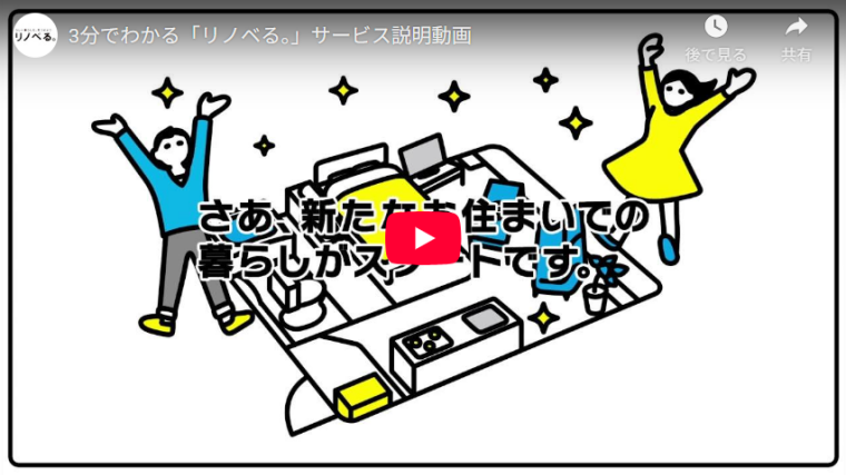 この動画は「リノベる。」が提供しているサービスを利用する流れを3分で説明したハウツー動画です。中古マンションを購入して、購入したマンションをリノベーションするまでの流れを3分間のアニメーションでうまく説明しています。