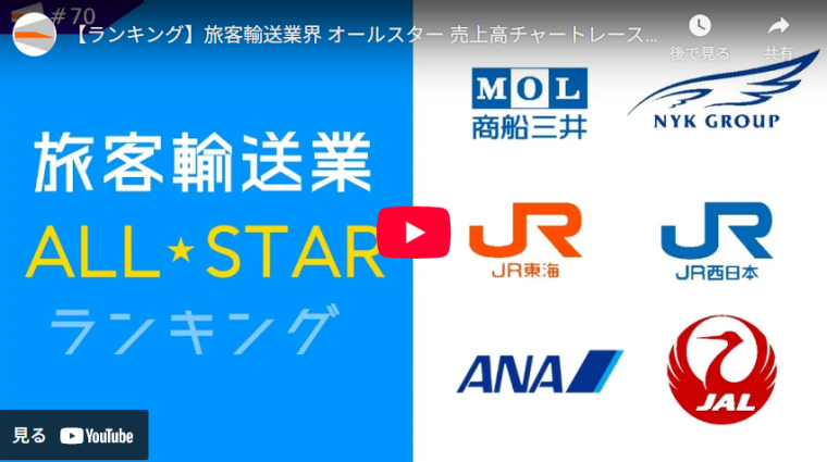 旅客輸送業界における2000年から2019年までの売上高推移が、わかりやすくかつ魅力的なアニメーションに仕上がっています。