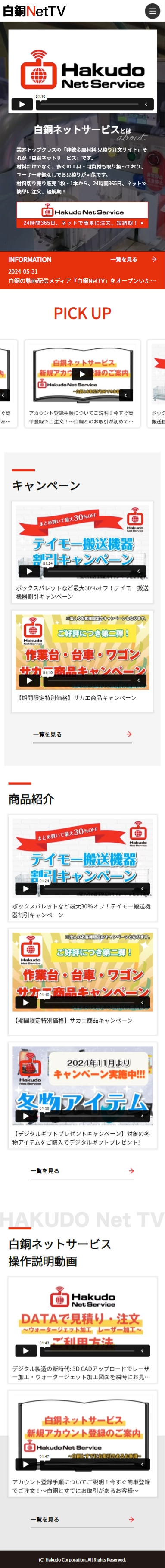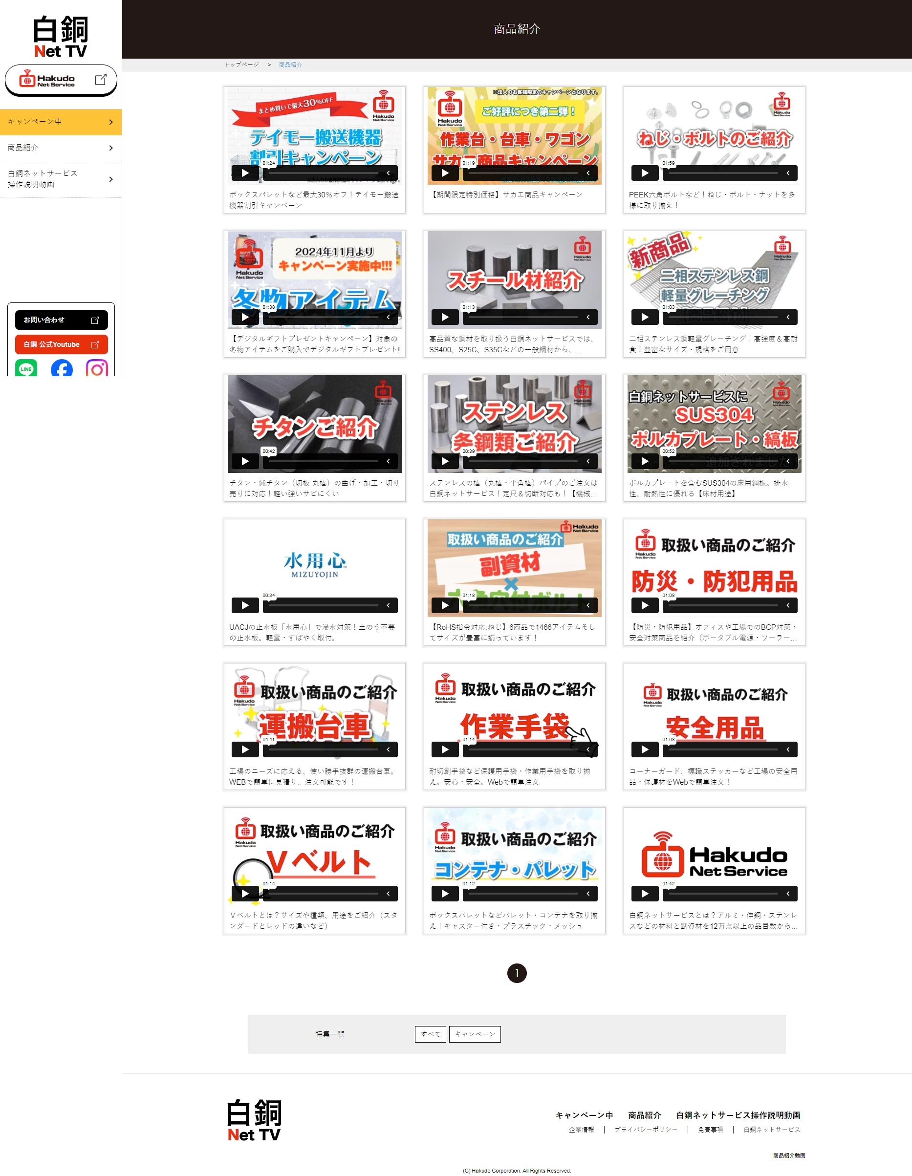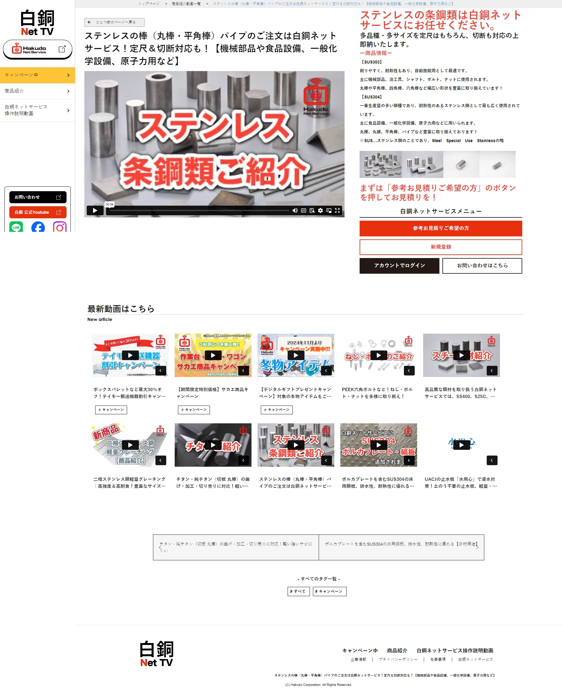 取扱い商品の紹介動画や開催中のキャンペーンの告知動画、ネットでお見積り・ご注文可能な『白銅ネットサービス』の便利な使い方紹介動画など、顧客体験を向上させる動画を配信しています。